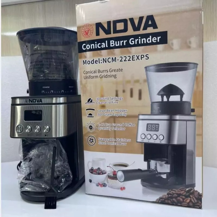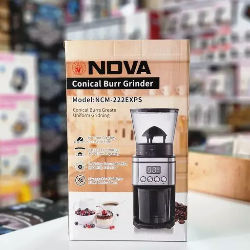 آسیاب قهوه دیجیتال ندوا NDVA مدل NCM-222EXPS ✔️دارای مخزن 300گرمی ✔️دارای قابلیت شات زن ✔️آسیاب قهوه اتوماتیک توان 200وات ✔️دارای نمایشگر دیجیتال جنس بدنه استیل ✔️دارای درجه تنظیم سایز آسیاب قهوه ✔️دارای قطع کن اتوماتیک دارای لرزش گیر قدرتمند ✔️مناسب برای تمامی اسپرسو ساز ها و قهوه های ترک،فرانسه ، عربی ، موکا ، قهوه جوش .....