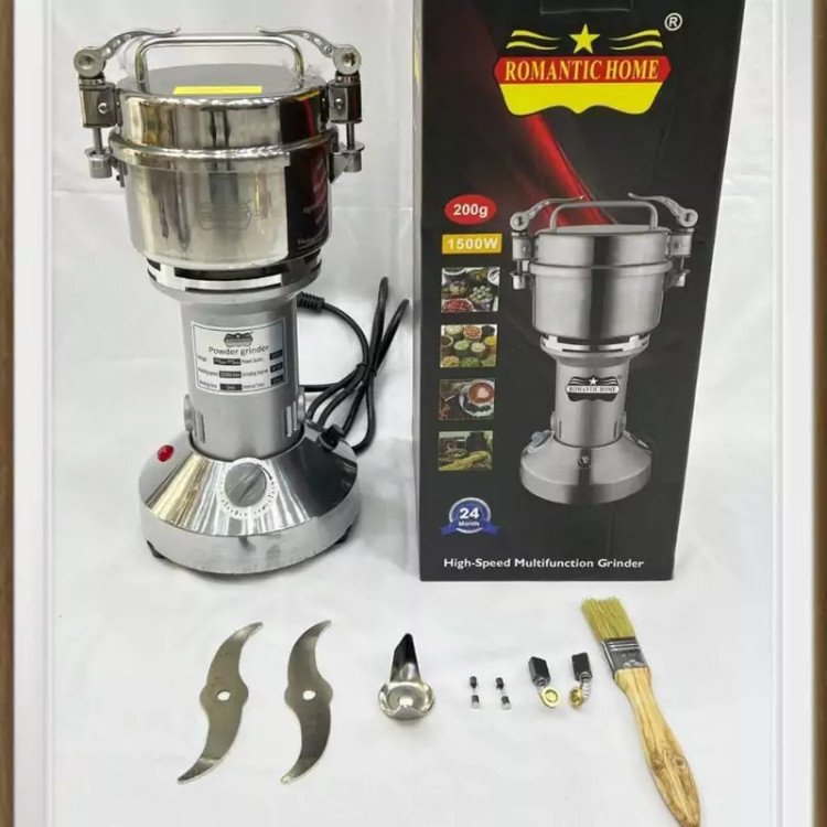 آسیاب صنعتی رمانتیک هوم ظرفیت 200 گرم توان 1500 وات مدلMERR2 تیغه های فولادی بدنه استیل ضد زنگ دارای تیغه و برس اضاف